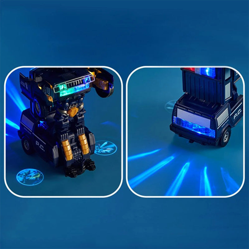 "Snygg transformerande polisbil-leksak för barn med LED-lampor, ljudeffekter och robotfunktionalitet"