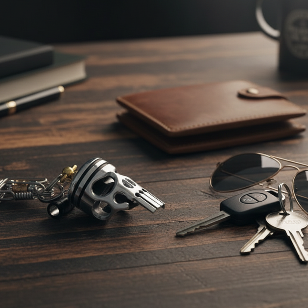- 1x Kolvkonst dödskalle-nyckelring