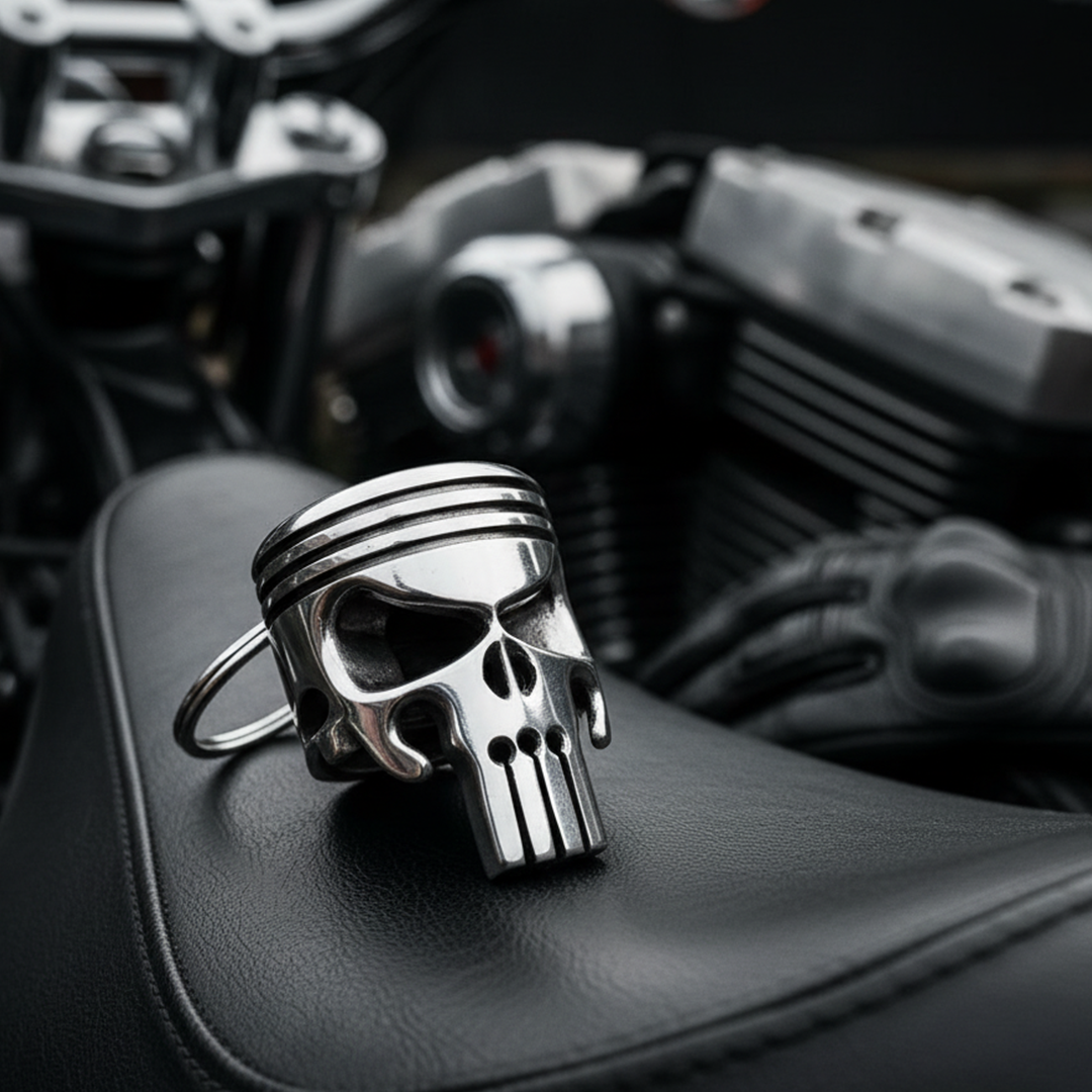 Ge din motorcykel den unika stilen den förtjänar med en dödskalle-nyckelring som fångar både blickar och personligheter. Den är designad med en flasköppnare och har en skinande silverfärg som lyfter fram dess detaljerade gravyrer och polering. Perfekt som en personlig prydnad eller en unik gåva till motorcykelentusiasten.