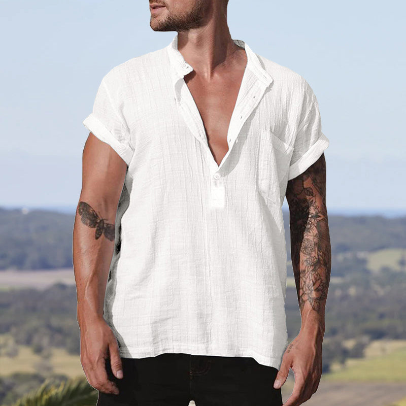Herrskjorta i Bomullslinne med Ståkrage Kortärmad